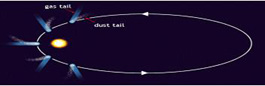 Sao chổi có quỹ đạo hình ellip rất dẹt , sao chổi trên hình vẽ này có hai đuôi: một đuôi khí và một đuôi bụi vũ trụ.