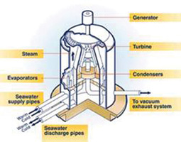 Thiết bị có thể thu nhiều năng lượng mặt trời nhất chính là đại dương. Theo Bộ năng lượng Hoa Kỳ, mỗi ngày các đại dương thu nhiệt từ mặt trời đủ bằng lượng chứa trong 250 tỉ thùng dầu. Công nghệ OTEC biến đổi năng lượng nhiệt có trong đại dương thành điện bằng cách lợi dụng sự chênh lệch nhiệt độ giữa bề mặt nước. Sự khác biệt về nhiệt độ có thể vận hành tua-bin, làm chạy các máy phát điện. Thiếu sót của công nghệ này là công suất điện thu được vẫn còn quá nhỏ.