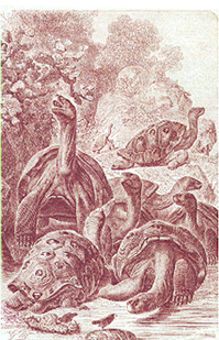 Tháng 9/1835 Darwin đã có cơ hội tiếp cận với những con rùa khổng lồ sống trên đất và dưới nước trong vùng núi lửa GALAPAGES trên xích đạo |