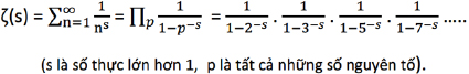 Ông nhìn ζ (s) như là một hàm phức (s = σ + it) chứ không phải một hàm thực. Trừ một số ít trường hợp tầm thường, Riemann phát biểu rằng hàm ζ (s) có vô số nghiệm không tầm thường mà phần thực là σ = ½. Phát biểu này được gọi là giả thuyết Riemann. Cho tới ngày nay, dự đoán này là một trong những bài toán chưa giải được quan trọng nhất của Toán học7. Đây là một trong 7 bài toán thiên niên kỷ mà viện Toán học Clay sẽ trao giải thưởng 1 triệu USD cho bất cứ ai giải được.