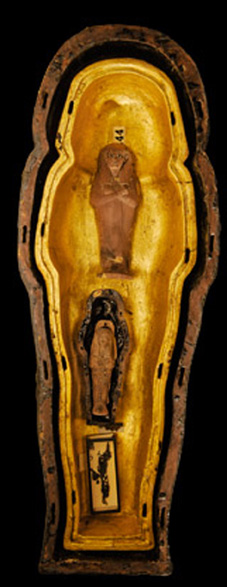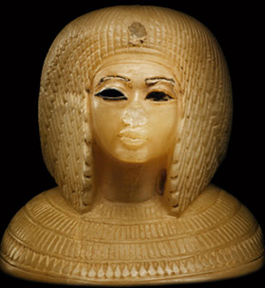 ![]() Bên trong chiếc rương tìm thấy trong mộ của của Tut, người ta thấy có cả bộ tượng nhỏ ghi tên Nữ hoàng Tiye, một hộp đựng tóc, đây có thể là kỷ vật về người bà yêu quí của ông. |