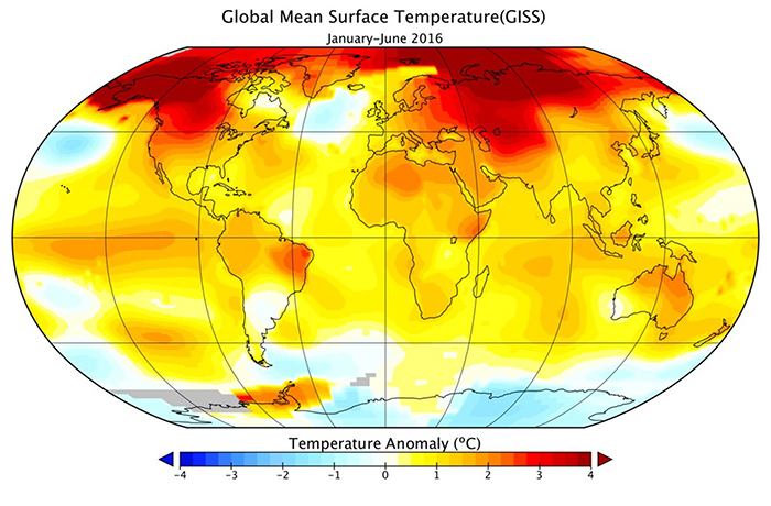Sáu tháng đầu năm của năm 2016 thiết lập một kỷ lục về những tháng nóng nhất toàn cầu.