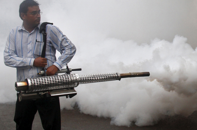Ở Chandigarh, Ấn Độ, công nhân đang cần mẫn phun thuốc diệt muỗi để ngăn ngừa sự lây lan bệnh của sốt xuất huyết, sốt rét. Nguồn ảnh: Ajay Verma/Reuters.