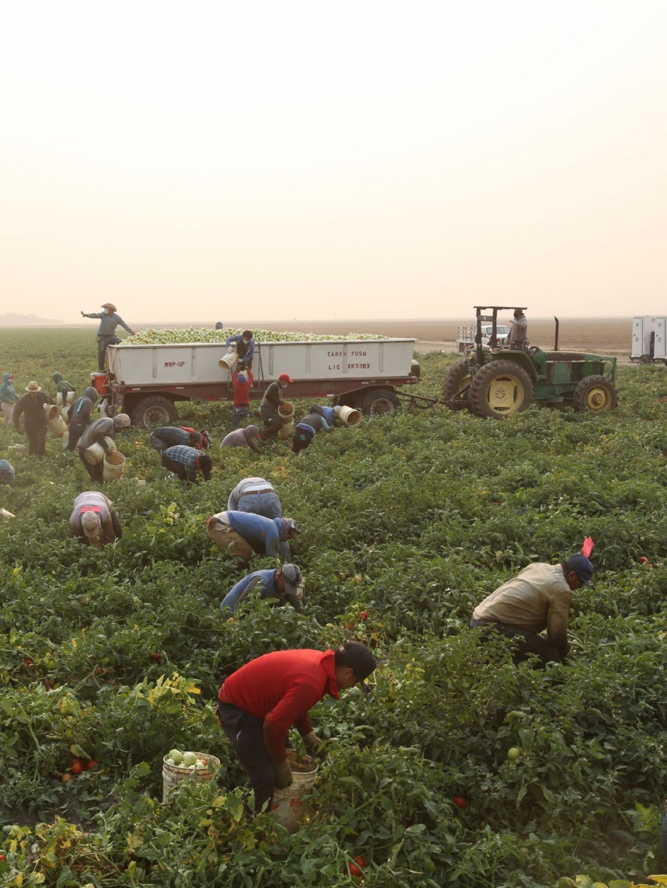 Những người lao động vất vả mưu sinh dưới cái nắng như thiêu đốt tại một cánh đồng cà chua ở Los Baños, California. Nhiệt độ tăng cao không chỉ ảnh hưởng đến sức khỏe và khả năng lao động của người dân, mà nền nông nghiệp ở California cũng đang trong tình trạng phải đối mặt với hạn hán. Ảnh: Sciencefile.