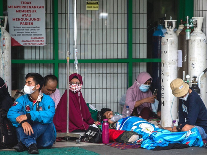 Người bệnh COVID-19 đang chờ được điều trị tại một bệnh viện ở Indonesia. Biến thể Delta đang hoành hành ở đây. Ảnh: Juni Kriswanto/AFP/Getty