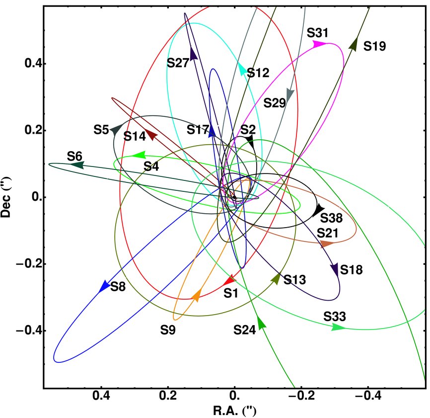 2. “Monitoring Stellar Orbits Around The Massive Black Hole in the Galactic Center,” S. Gillessen, F. Eisenhauer, S. Trippe, T. Alexander, R. Genzel, F. Martins, and T. Ott, ApJ, 692 (2009)