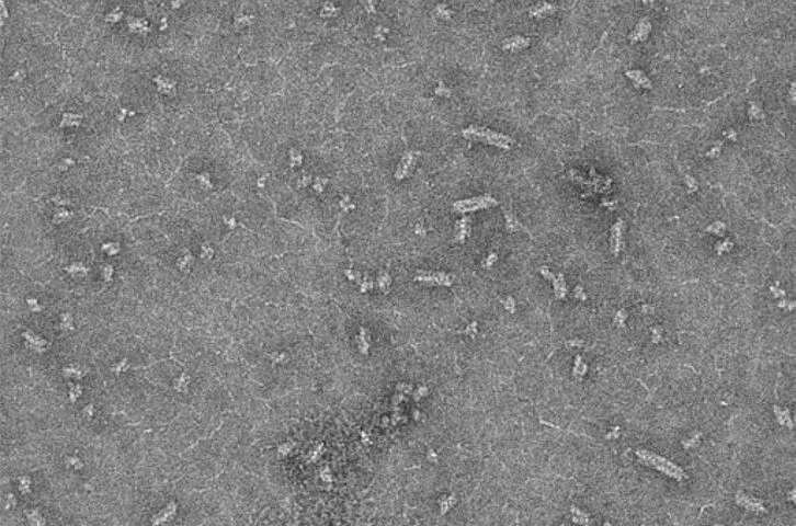 Một bức ảnh chụp từ kính hiển vi điện tử hiển thị các cấu trúc sợi SgrAI/DNA. Nguồn: Nancy Horton