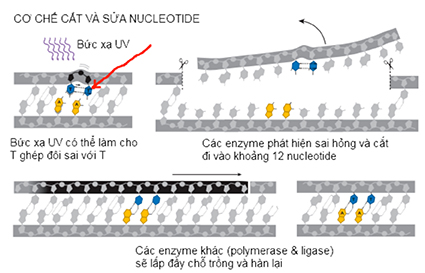 Cơ chế sửa chữa này có tên là cắt và sửa nucleotide (nucleotide excision repair).