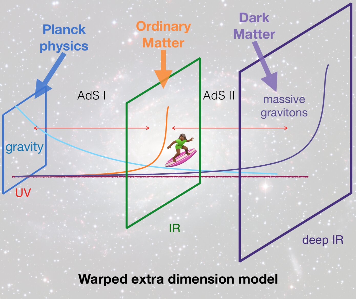 “Nghiên cứu của chúng tôi được bắt đầu bằng việc xem xét các chiều dư, cụ thể là các chiều dư biến dạng, vốn đã được nghiên cứu ngót 20 năm qua”, Giacomo Cacciapaglia, một trong những nhà nghiên cứu tham gia thực hiện công trình này, nói với Phys.org. “Khi hấp dẫn được lan truyền trong vũ trụ không thể quan sát đó, nó vật chất hóa các hạt graviton có khối lượng. Việc kết cặp của chúng với vật chất thông thường rất yếu, đã hình thành nên nguồn gốc của hấp dẫn.”