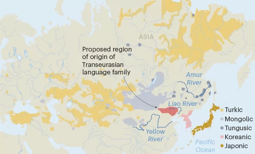 Một nghiên cứu kết hợp bằng chứng về ngôn ngữ, di truyền và khảo cổ đã truy dấu được nguồn gốc của một ngữ hệ bao gồm các ngôn ngữ Nhật Bản, Hàn Quốc, Thổ Nhĩ Kỳ và Mông Cổ ngày nay và những người dùng các ngôn ngữ này với những người nông dân trồng kê ở đông bắc Trung Quốc cách ngày nay khoảng 9000 năm.