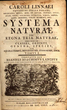 Cuốn sách Systema Naturae (Hệ thống Tự nhiên) nổi tiếng của Linnaeus được xuất bản lần đầu tiên vào năm 1735 chỉ có hơn chục trang. Trong đó ông đã chỉ ra một hệ thống tự nhiên bao gồm ba giới: giới thực vật, giới động vật và giới khoáng vật. Đến năm 1770, trong lần xuất bản thứ 15, cuốn sách này đã có nội dung lên tới ba nghìn trang với rất nhiều sự chỉnh, mở rộng và bổ sung quan trọng. Sự phân loại giới thực vật của Linnaeus là một công trình đặc biệt xuất sắc, với tính sáng tạo và tính hệ thống cao. Khi nhận ra rằng, các bông hoa chính là những cấu trúc sinh sản của thực vật, ông đã sử dụng nhị và nhụy của chúng để làm đặc trưng cho các nhóm phân loại. Ông đã phân ra được 23 lớp cây có hoa (lớp thứ 24 là các cây không nở hoa) dựa trên số lượng, kích cỡ và sự sắp xếp các nhị của chúng. Trong mỗi lớp đó, ông lại thực hiện sự phân chia theo các trật tự dựa trên đặc điểm nhụy của mỗi loài.