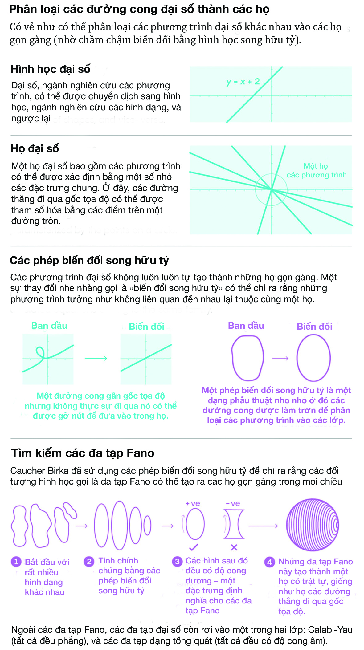 “Điều quan trọng nhất là hình dạng, cấu trúc của tập nghiệm”, Birkar nói. “Tập nghiệm chính là cái chúng tôi đại khái gọi là đa tạp đại số”.