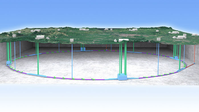 Máy va chạm positron điện tử vòng tròn (CEPC) của Trung Quốc có thể được xây dựng trong đường hầm đường kính 100 km tại một địa điểm còn chưa được xác định. Nguồn: IHEP