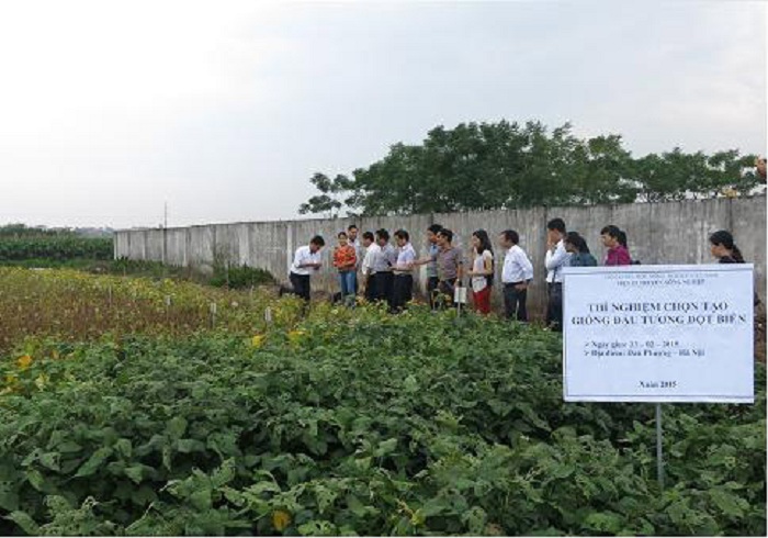 Tuy Việt Nam đã là thành viên chính thức của FNCA (Forum for Nuclear Cooperation in Asia) từ năm 1995 song đến nay nước ta vẫn chưa có trung tâm nghiên cứu về ứng dụng kỹ thuật hạt nhân nhằm cải tiến giống cây trồng, các hoạt động nghiên cứu trong lĩnh vực này mang tính tự phát, rời rạc, thiếu định hướng, thiếu cơ sở hạ tầng như cơ sở chiếu xạ và phòng thí nghiệm công nghệ sinh học hỗ trợ, thiếu nguồn nhân lực, đặc biệt nguồn nhân lực đào tạo bài bản… Nhưng trong hơn 30 năm qua, với việc tạo giống cây trồng bằng một số phương pháp hiện đại, trong đó có phương pháp chiếu xạ, Viện Di truyền Nông nghiệp đã tạo ra 40 giống đột biến, trong đó nhiều giống lúa đột biến với ưu điểm về khả năng thích nghi rộng, năng suất cao, chống chịu tốt với các yếu tố sinh học và phi sinh học, nổi bật nhất là hai giống DT10 và Khang Dân đột biến. Giống lúa DT10 đưa vào sản xuất năm 1990, có khả năng thích ứng rộng, năng suất cao (6 – 8 tấn/ha, cao hơn 40% so với năng suất trung bình), đặc biệt với khả năng chịu lạnh, nhanh chóng trở thành giống chủ lực trong sản xuất ở các tỉnh phía Bắc thời gian đó, góp phần đưa tăng năng suất lúa cả nước. Giống Khang Dân đột biến được công nhận năm 2007, năng suất cao, chống chịu tốt với chất lượng gạo phù hợp nhu cầu, thị hiếu của người dân, diện tích gieo trồng khoảng 200.000 ha/năm… Riêng trong năm 2015, Viện đã tạo ra được một số giống đột biến triển vọng mới như lúa DT80, hoa cúc, hoa đồng tiền đột biến, đậu tương DT96ĐB, đặc biệt là giống đậu tương hạt đen DT2008ĐB có hàm lượng dinh dưỡng, Omega3, Omega6 cao, phục vụ nhu cầu chế biến thực phẩm.
