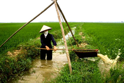 ![]() Nông dân vẫn phải dùng “công nghệ” thủ công để tát nước vào ruộng. |