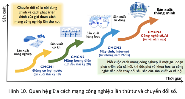 Cốt lõi của thực hiện cách mạng công nghiệp lần thứ tư ở nước ta là thực hiện chuyển đổi số (Hình 10). Có thể nói chuyển đổi số là nội dung chính và cách phát triển chính trong giai đoạn cách mạng công nghiệp lần thứ tư.
