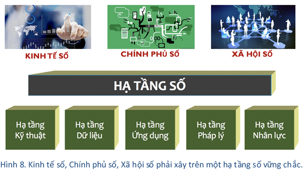 Hạ tầng số (digital infrastructure) là những thành phần cơ bản và thiết yếu nhất cần có để hoạt động trong kỷ nguyên số. Chúng tôi quan niệm hạ tầng số gồm2 (Hình 8):