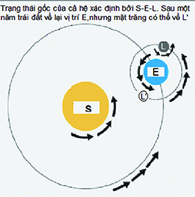 Trạng thái vũ trụ của một thời điểm, ví dụ tại điểm bắt đầu của năm hình thành nên con người (tuổi số 0) được xác định bởi ba điểm: Tâm Mặt trời (S), Tâm Trái đất trên Hoàng đạo (E) và Tâm Mặt trăng trên quỹ đạo tháng (L). Hết một năm Mặt trời, Trái đất trở về điểm E còn Mặt trăng trở lại điểm nào đó, L’ chẳng hạn (xem hình 1).