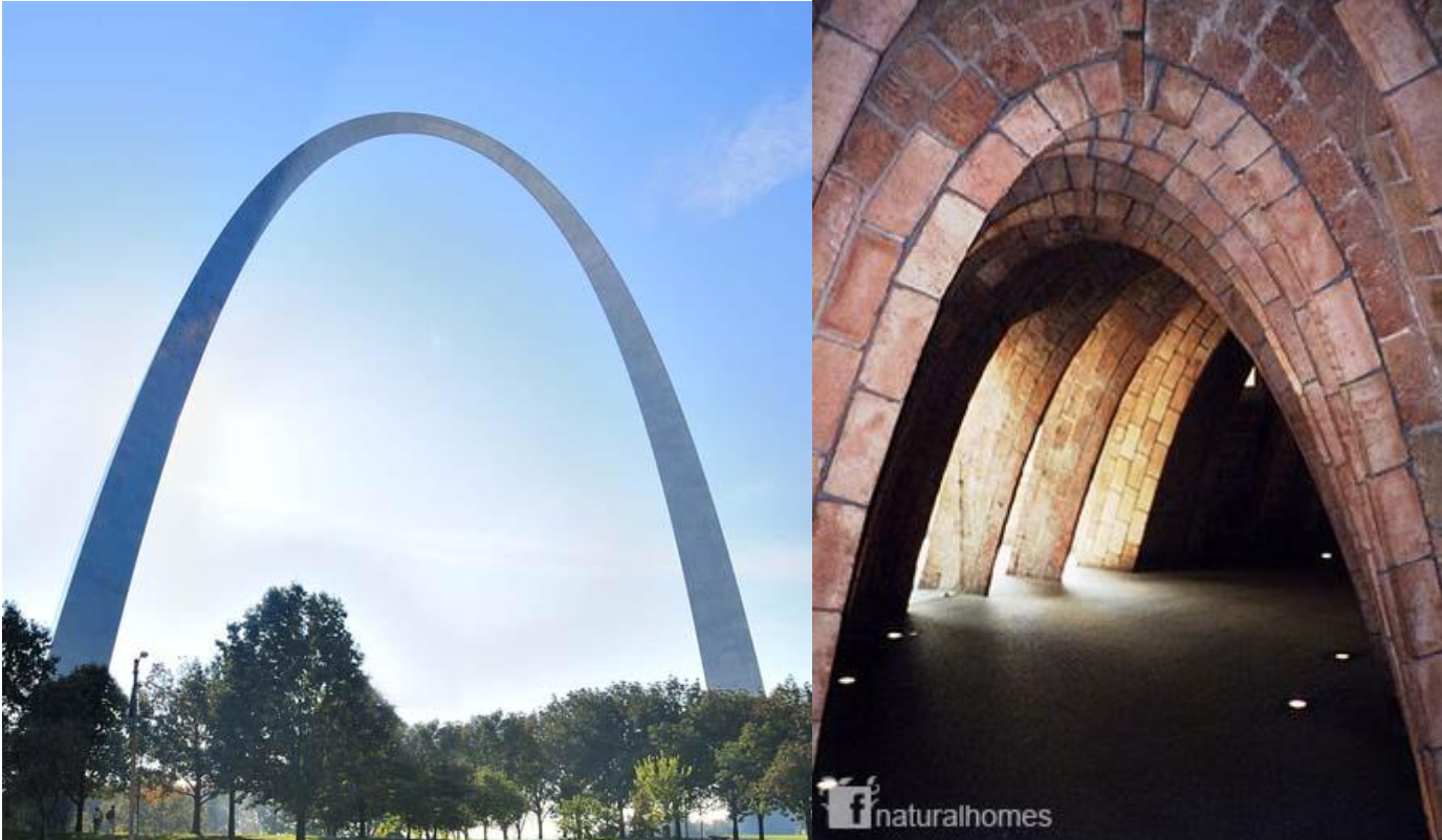 Bên trái là St Louis gateway, bên phải là những vòm trong trường ĐH Oxford. Đó là những hình có dạng catenary úp ngược.