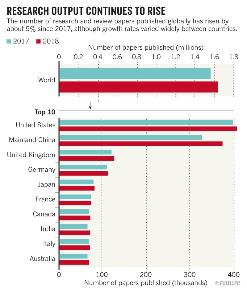 Caroline Wagner – nhà nghiên cứu chính sách KH&CN tại trường đại học Ohio và cựu cố vấn của chính phủ Mỹ, nhận xét: chính sự đa dạng của các quốc gia trong việc đóng góp vào dữ liệu khoa học chung của thế giới đã góp phần lan tỏa thành công này. “Nếu vào năm 1980, 5 quốc gia chiếm tới 90% công bố khoa học toàn thế giới – Mỹ, Anh, Pháp, Đức và Nhật Bản thì hiện nay, 20 quốc gia nằm trong nhóm có nhiều công bố nhất thế giới”.