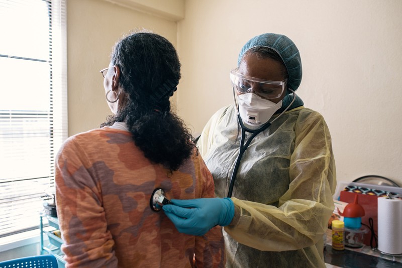 Một nhà trị liệu ở Mỹ đang kiểm tra phổi của bệnh nhân. Một thuật toán thiên kiến đã đưa ra khuyến nghị về chính sách y tế trên nhiều nhóm bệnh nhân. Nguồn: Alexandra Hootnick/NYT/Redux/eyevine