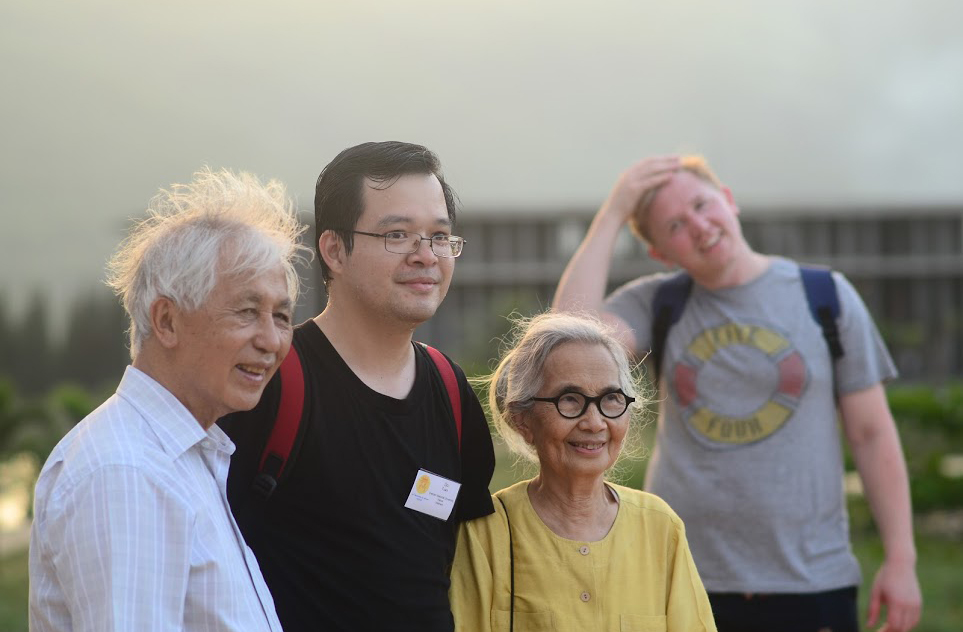 TS. Đỗ Quốc Tuấn và vợ chồng giáo sư Trần Thanh Vân tại Trung tâm Quốc tế Khoa học và Giáo dục liên ngành Quy Nhơn.