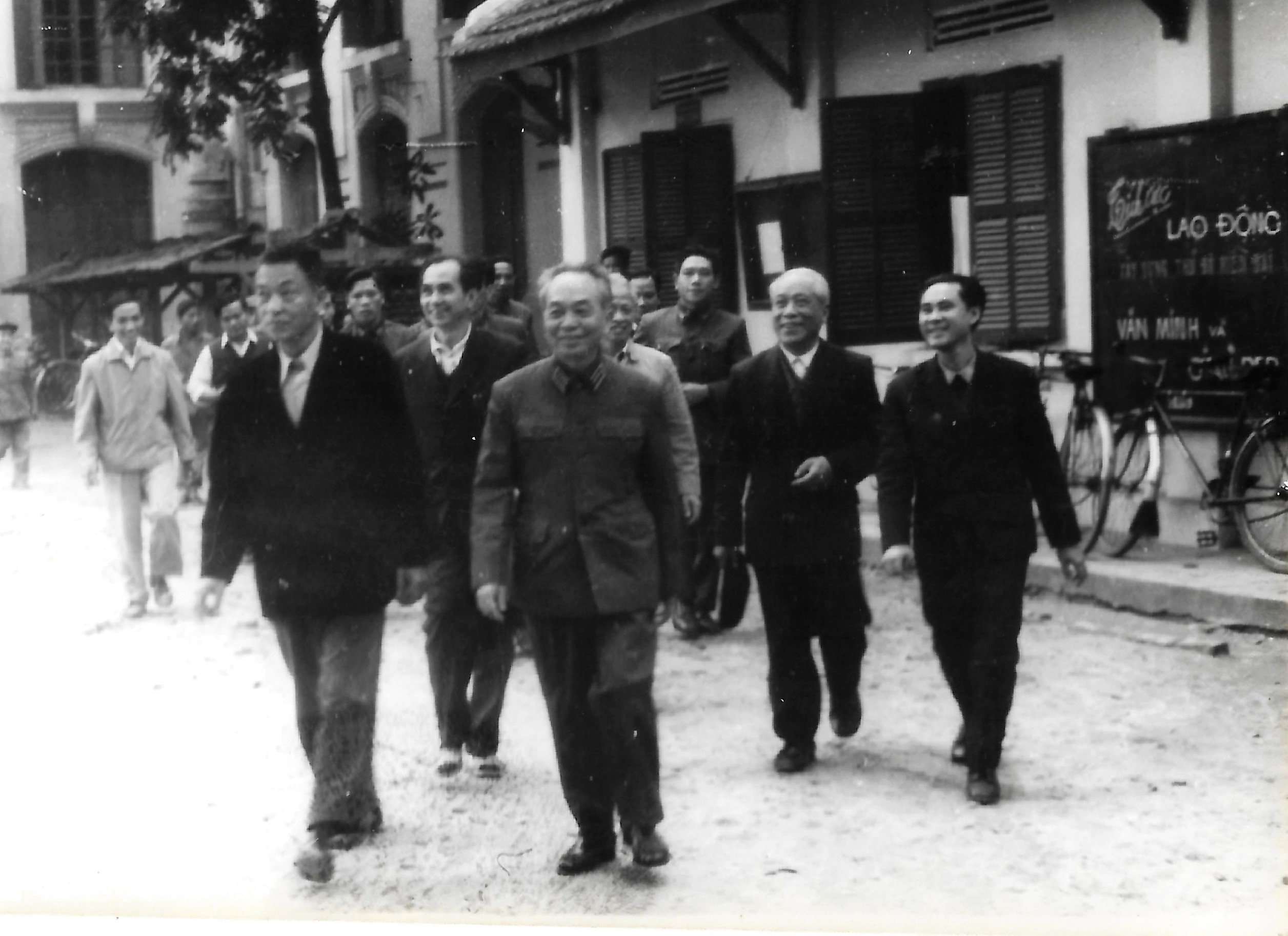 Đại tướng Võ Nguyên Giáp đến thăm giáo sư Đào Văn Tiến ở Phòng Bảo tàng động vật của Trường Đại học Tổng hợp Hà Nội (19 Lê Thánh Tông) trong năm 1979. Đđằng sau là các giáo sư Ngụy Như Kon Tum và Nguyễn Đình Tứ… Nguồn: Tư liệu