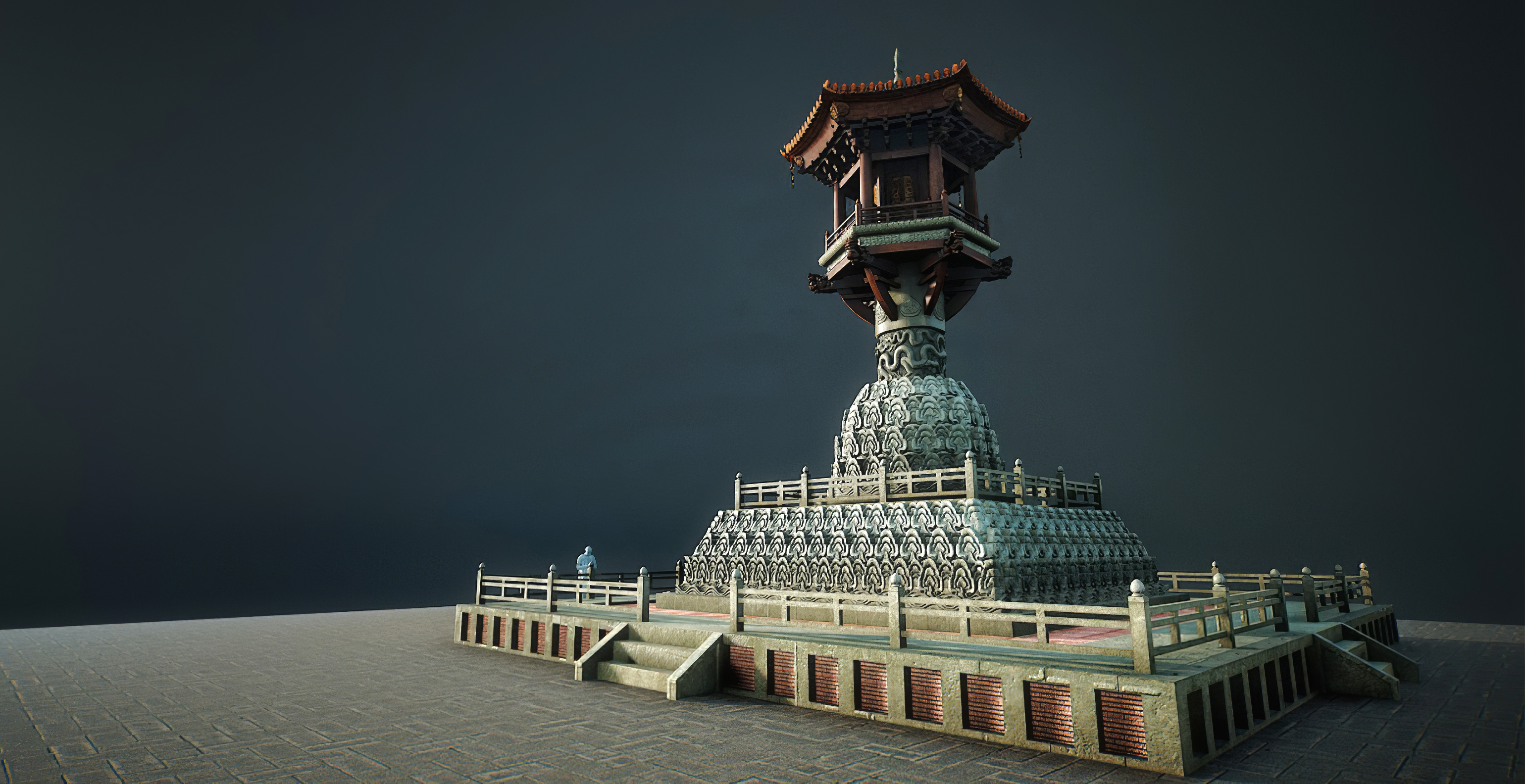 Hình ảnh phục dựng kiến trúc cột đá chùa Dạm của Đào Xuân Ngọc, 3DArt số hóa.