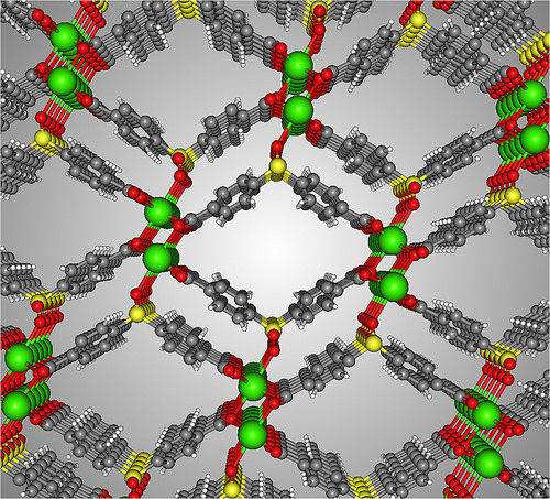 Mô hình phân tử SBMOF -1, loại vật liệu mới có khả năng bắt đươc khí xenon và kryton.