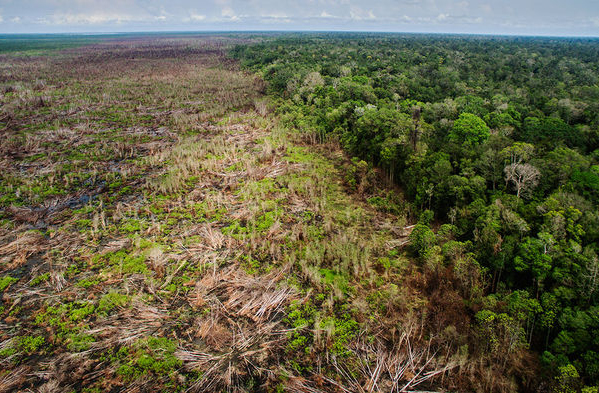Các cánh rừng ở Borneo,Indonesia bị đốn hạ để trồng cây cọ dầu. Nguồn: Science.