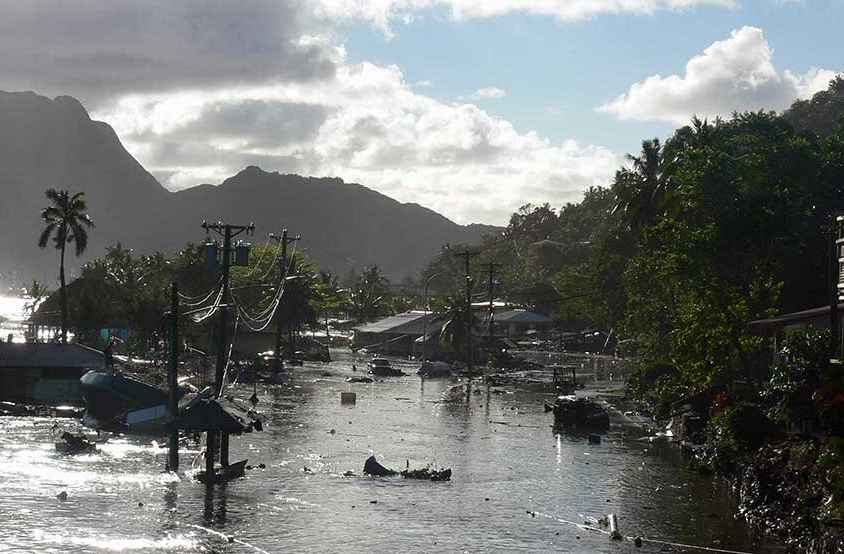 Vào ngày 29/9/2009, một trận sóng thần đã gây ra thiệt hại đáng kể về người và của ở quần đảo Samoa. Trận sóng thần này được tạo ra bởi một vụ động đất lớn ở Nam Thái Bình Dương. Ảnh: NOAA