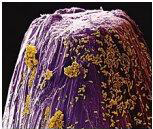 Khi chúng ta đề cập đến các loại vi khuẩn, bởi vì hầu hết các loại vi khuẩn đều có kích thước nhỏ – thường chỉ khoảng từ 0,5 đến 5,0 micro mét (hay micromet, ký hiệu là μm) – nên đây là đơn vị hay được sử dụng trong lĩnh vực này. Vậy micro mét nó to nhỏ ra sao? Một micro mét bằng một phần triệu mét, con số này thật ra vẫn khó hình dung. Vậy xin minh hoạ bằng hình bên cạnh (đã được phóng đại và nhuộm màu kích thước vi khuẩn (những hạt nhỏ màu vàng) so với đầu mũi kim may (hình chóp màu tím).