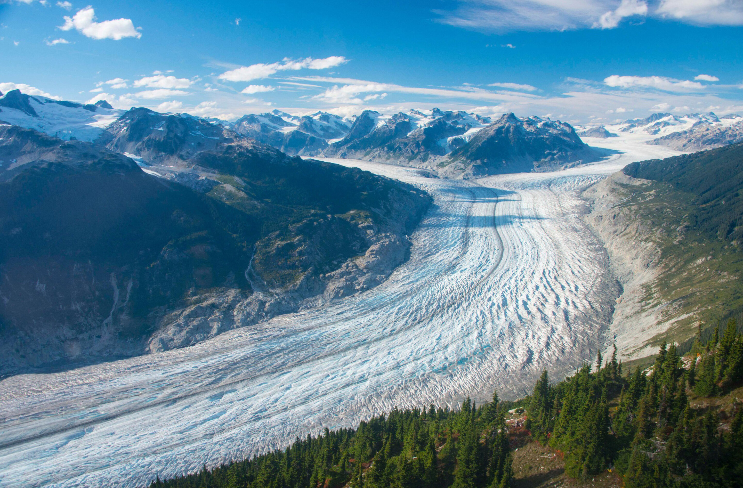 Bức ảnh chụp sông băng Klinaklini ở British Columbia, Canada, do nhà nghiên cứu Brian Menounos chụp vào tháng 9/2017. Sông băng này và các vùng băng liền kề đã mất gần 16 tỷ tấn băng tuyết từ năm 2000, trong số đó mất 10,7 tỷ tấn kể từ 2010. Ảnh: Brian Menounos/AP.