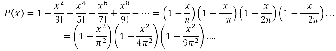 sau đó Euler viết P(x) dưới 2 dạng khác nhau và đồng nhất hệ số để tính được ζ (2).