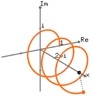 ![]() Đồ thị phần thực của eix. |
