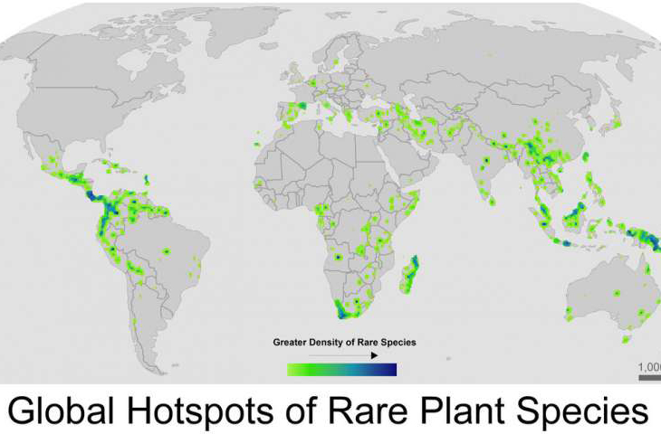 Những điểm nóng về các loài thực vật quý hiếm trên toàn cầu. Nguồn: Phys.org