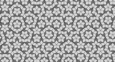 ![]() Hình 4. Hình ghép Penrose là một hình với đối xứng điểm bậc 5 có trật tự tầm xa (long-range order) song không có chu kỳ tịnh tiến. |