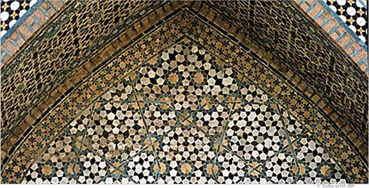 ![]() Hình 6. Một hình ghép QC của Penrose trong đền thờ phụng Darb-i Imam ở Isfahan, Iran, xây dựng năm 1453 |