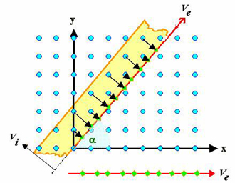 Ta bắt đầu từ một mạng lưới 2D ( x,y)-đóng vai trò siêu không gian – gồm các hình vuông (xem hình 7). Ta nhúng vào không gian 2D một đường thẳng 1D (trên hình là đường Ve tức Vexterior), đóng vai trò không gian ngoài tức không gian thực tại của chúng ta. Ve làm với Vi hai không gian con trực giao với nhau, Vi gọi là không gian trong (Vi tức Vinterior) [6]. Đường Ve làm một góc anpha với trục x và tananpha=số vô tỷ tau= 1,618 (tỷ số vàng). Lấy một dải trong không gian (Ve ,Vi). Trong dải đó có nhiều điểm của không gian (x,y). Ta chiếu các điểm đó xuống Ve, ta sẽ thu được một dãy không chu kỳ (xem đường Ve vẽ nằm ngang ở dưới cùng hình vẽ).