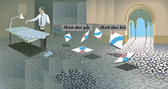 ![]() Giữa năm 1970, nhà toán học Roger Penrose chế tạo một hinh ghép không có chu kỳ (aperiodic mosaic), một hình vẽ không bao giờ lặp lại bản thân bằng cách sử dụng hai hình thoi (gọi là hình thoi béo và hình thoi gầy). |