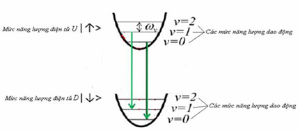![]() Hình 6. Hai mức điện tử U và D và nhiều mức dao động v. |