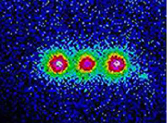 ![]() Hình 5. Hình ảnh huỳnh quang phát đi bởi 3 ions Be+ bị bẫy. |