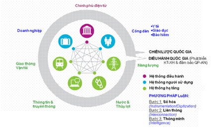 Trong quá trình tiến vào nền kinh tế tri thức, mỗi quốc gia tiên tiến đều xây dựng các hạ tầng thông minh trên nền tảng, cơ sở của một số hệ thống cốt lõi – gồm các cấu trúc hạ tầng, các mạng lưới thông tin và truyền thông (TT&TT) và công tác môi trường – xem như các yếu tố trung tâm để điều hành và phát triển đất nước, cụ thể là: các dịch vụ công, khối doanh nghiệp, công dân, giao thông vận tải, thông tin truyền thông, nước và năng lượng.