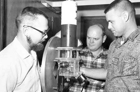 Bruce C. Murray (bìa phải) và các cộng sự bên chiếc máy dò mà họ sử dụng để lập bản đồ phân bố nhiệt của sao Kim vào năm 1962. Nguồn ảnh: caltech.edu.