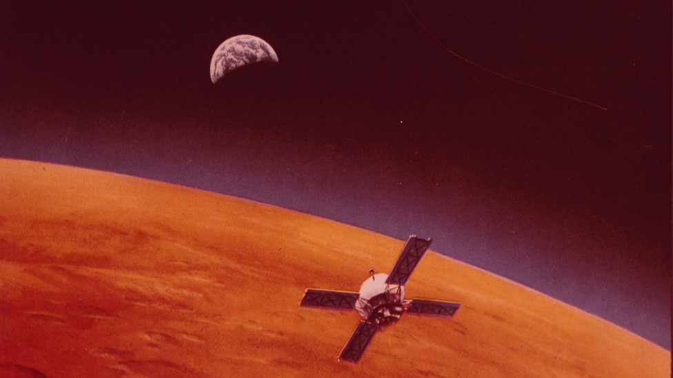 Một nghệ sĩ vẽ Mariner 9 bay trong quỹ đạo sao Hỏa vào năm 1977. Ảnh AP.