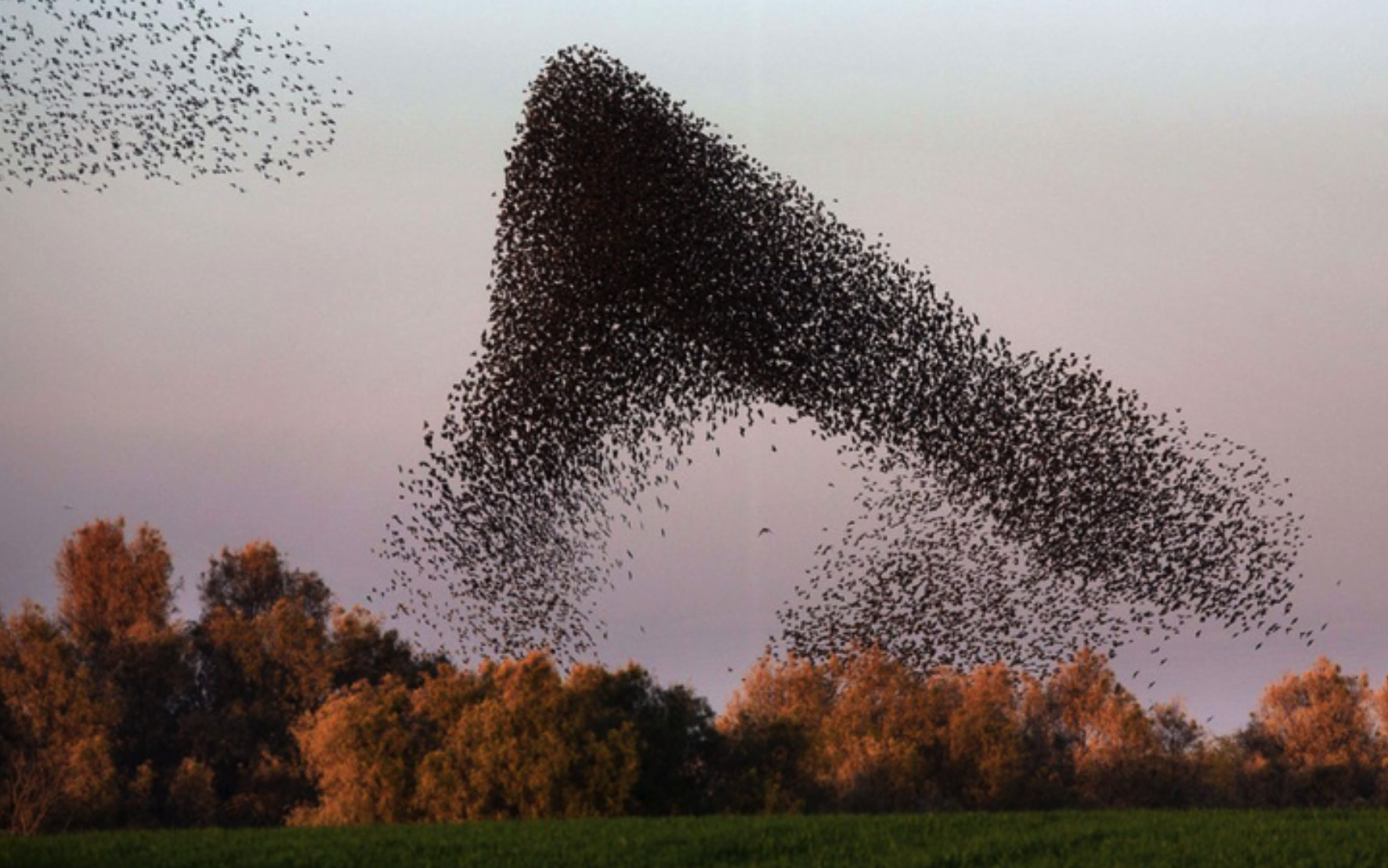 Hình 3: GS. Parisi nghiên cứu sự tạo thành hình dạng đột phát của bầy chim sáo.