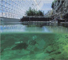 ![]() Mô hình nhà kính có hồ (giống như Sinh cầu 2), dùng để nuôi trồng các loại vi sinh vật, cây trồng hoặc tảo mới, phục vụ sản xuất hydro, hấp thụ carbon dioxide hoặc biến sản phẩm nông nghiệp thành nhiên liệu. |