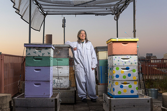 Nancy Moran nuôi ong mật trên nóc một tòa nhà của trường đại học để nghiên cứu hệ vi sinh vật của chúng. Ảnh: JULIA ROBINSON