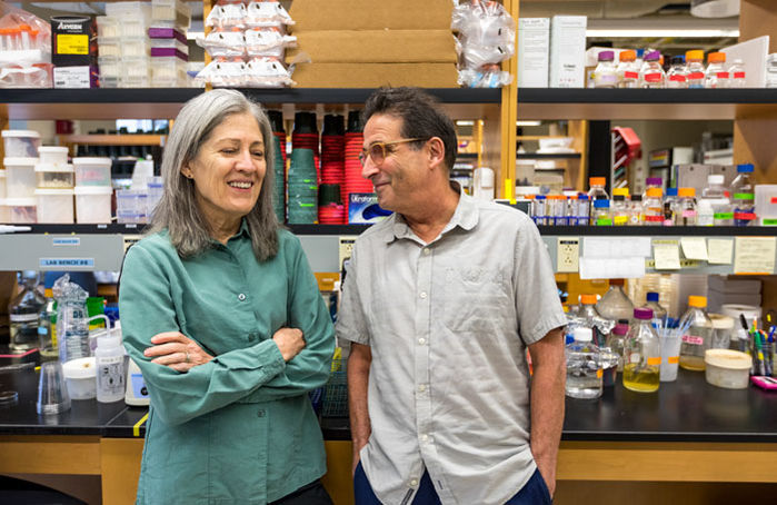 Nancy Moran gặp chồng, nhà nghiên cứu tiến hóa vi khuẩn Howard Ochman, tại một hội thảo khoa học. Họ gắn bó với nhau trong cả cuộc sống riêng lẫn trong công việc. Ảnh: JULIA ROBINSON