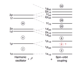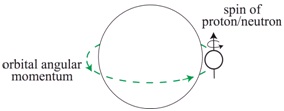 Hình 3. Minh họa lực liên kết spin-quỹ đạo. Hạt nhân sẽ bền vững hơn khi xung lượng quỹ đạo góc và spin của một proton hoặc notron có cùng hướng.